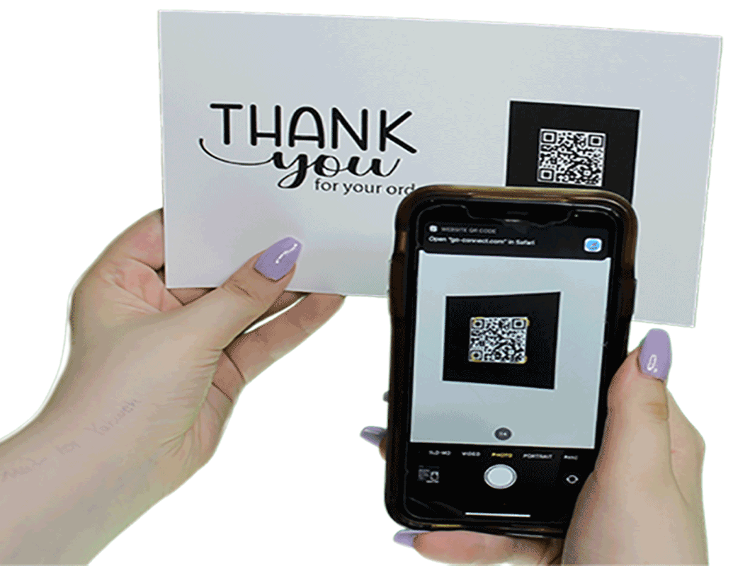 With this AR tech, you can send a special QR Code with your Thank You Card or flier. When they scan the code they will see your video pop up. This will create an unique experience with your customer as you express the joy it brought you in providing this service or making your product.